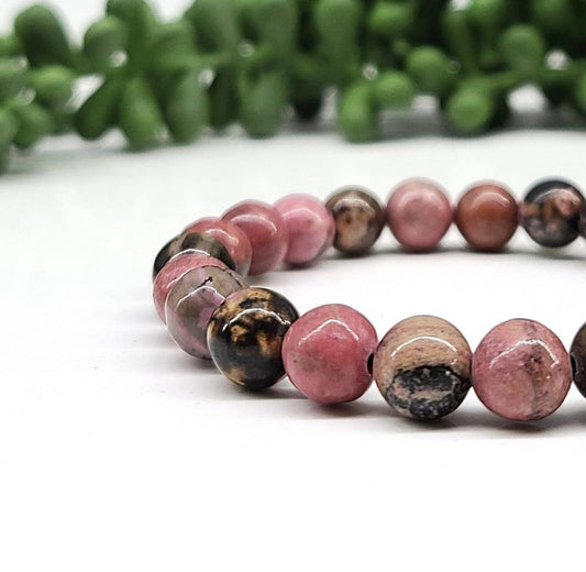Rhodonite Bracelet Stretchable 8mm Beads, 7.5"Long